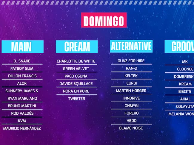 En tanto, el domingo tendremos a DJ Snake y Fatboy Slim en el escenario Main, así como a Charlotte De Witte y Cloonee en el «Cream» y «Groove», respectivamente.