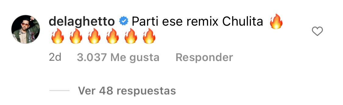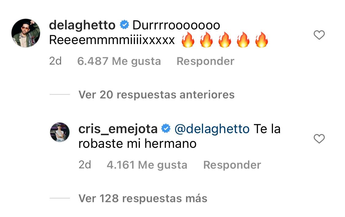 El otro cantante que aparecerá en el remix es nada más y nada menos que De La Ghetto, el legendario artista urbano intérprete de éxitos como “Tú te imaginas”, “La Ocasión” y “Sensación del Bloque”. El cantante se asomó en los comentarios de la publicación de Karol G donde anunciaba el remix. Allí, De La Ghetto aseguró que “partió” ese remix, mientras que Cris MJ le respondió y elogió su desempeño.