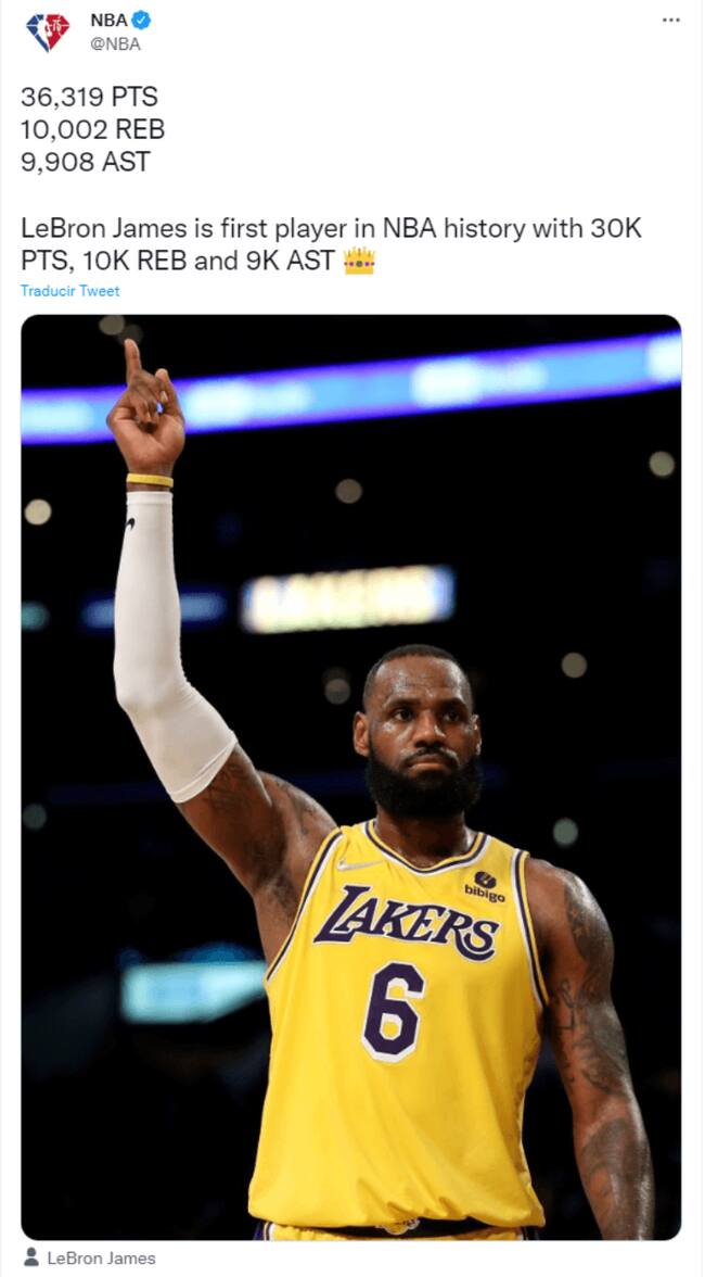En enero de este año, LeBron James se había llevado su primer récord tras posicionarse como el único jugador en la historia de la NBA con más de 30 mil puntos, 10 mil rebotes y nueve mil asistencias.