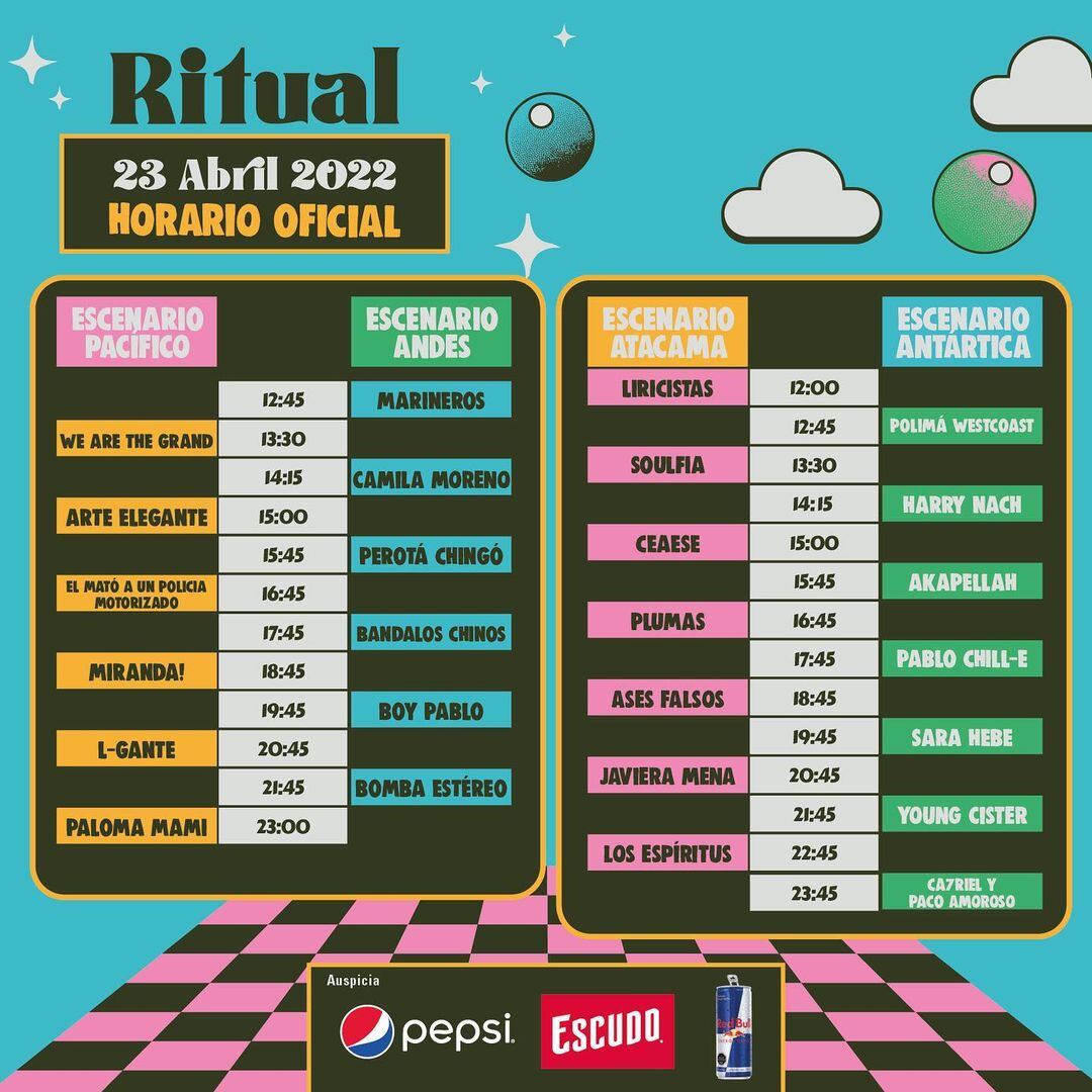 ¡Cada día falta menos! Este sábado 23 de abril, se realizará el esperado Festival Ritual, el evento que reunirá a artistas de la talla de Paloma Mami, Bomba Estéreo, L-Gante y Miranda en el Estadio Santa Laura.