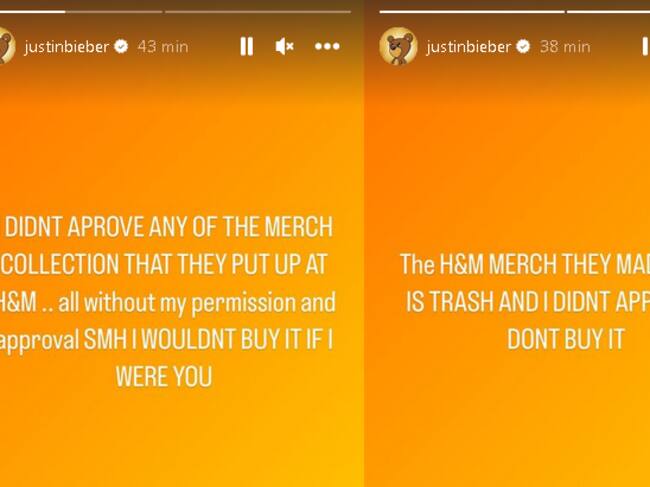El intérprete de “Peaches” escribió: “No apruebo ninguna de esta colección de merch que pusieron en H&M… Todo sin mi permiso ni aprobación. Es algo que yo nunca compraría si fuera ustedes”.