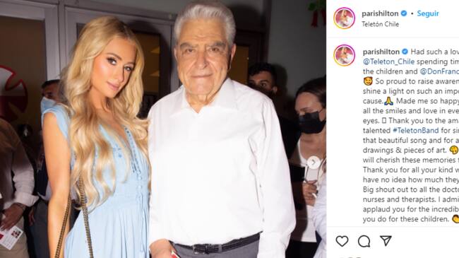 ¡El glamour llegó a Chile! Este miércoles 2 de noviembre, la estadounidense Paris Hilton fue a Teletón de Santiago para visitar el Instituto junto a Mario Kreutzberger, conocido como Don Francisco.