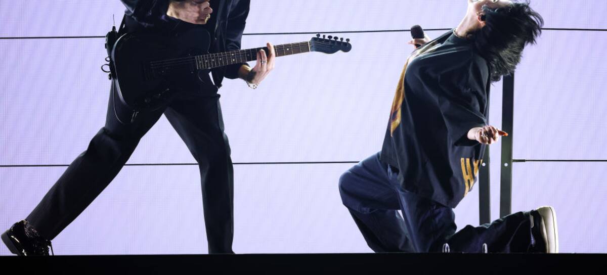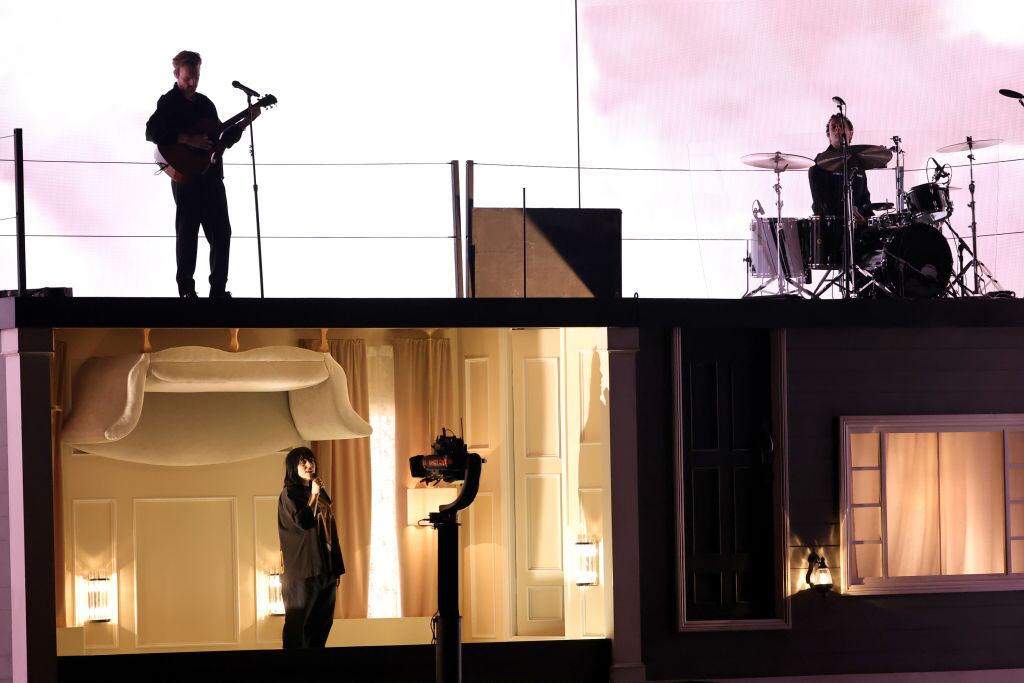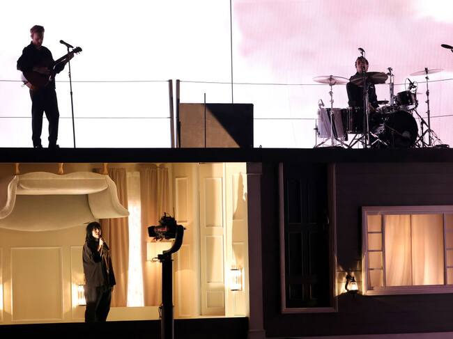 En medio de una noche llena de música en vivo que ha incluido desde Silk Sonic hasta BTS, las guitarras estuvieron a cargo de Finneas, que acompañó como siempre a su hermana en una más de sus presentaciones en vivo.