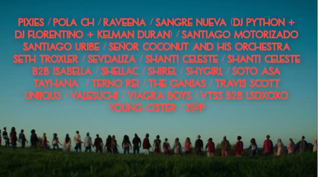 Entre los artistas, están: Lorde, Arctic Monkeys, Travis Scott, Young Cister, Björk, Jack White, Gianluca, Charli XCX, Bad Gyal, Phoebe Bridgers, Pixies, y muchos más.