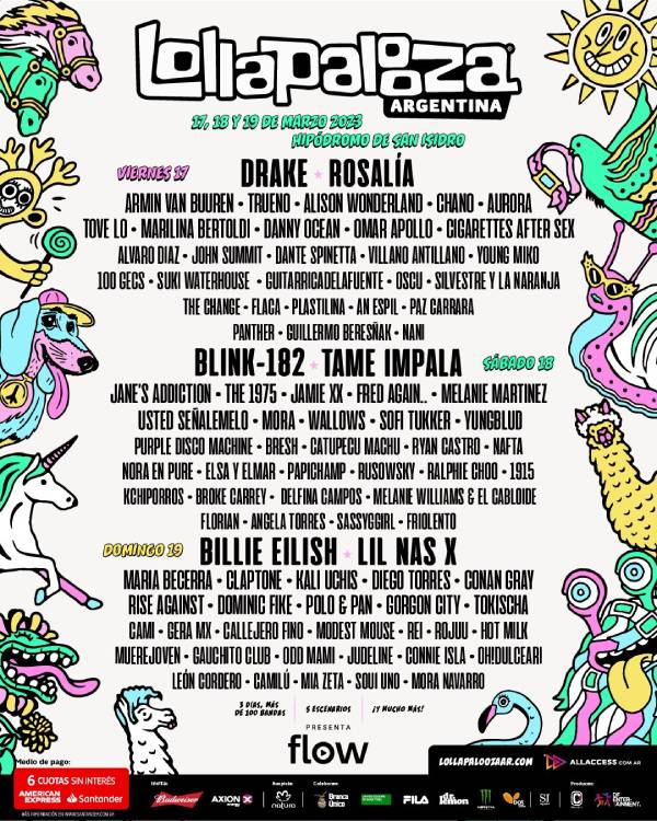 Hay que recalcar y recordar que este lineup diario es SOLAMENTE válido para el Lollapalooza Argentina 2023, puesto que el de Chile aún no es revelado.