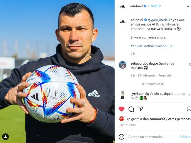 "Gary Medel ya tiene en sus manos Al Rihla, listo para empezar una nueva historia", dice la publicación de la marca oficial del Mundial