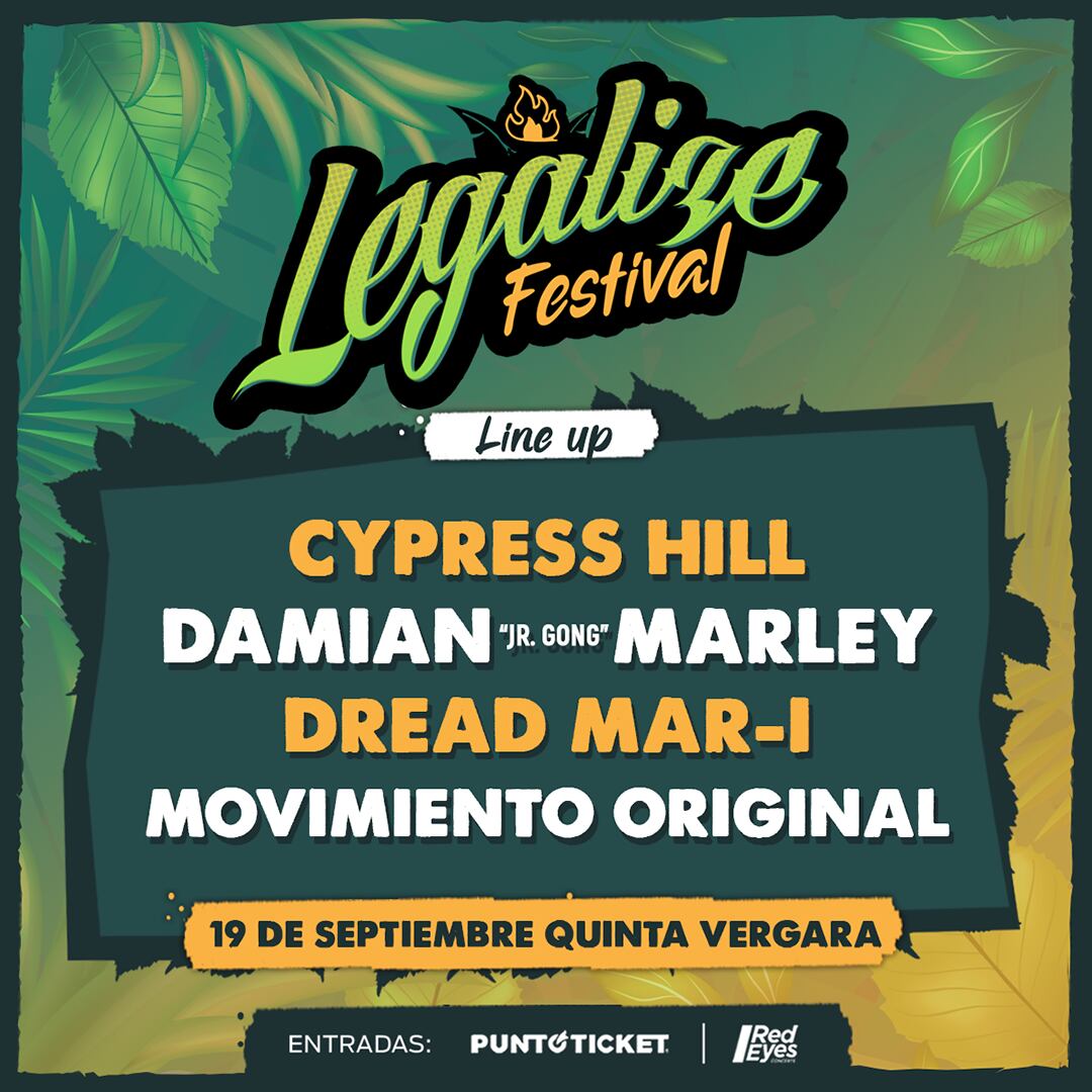 ¡Se viene un tremendo panorama en Viña del Mar! Porque llega una nueva edición de Legalize Festival a Chile, donde se presentará Cypress Hill, Damian Marley, Dread Mar I y Movimiento Original.