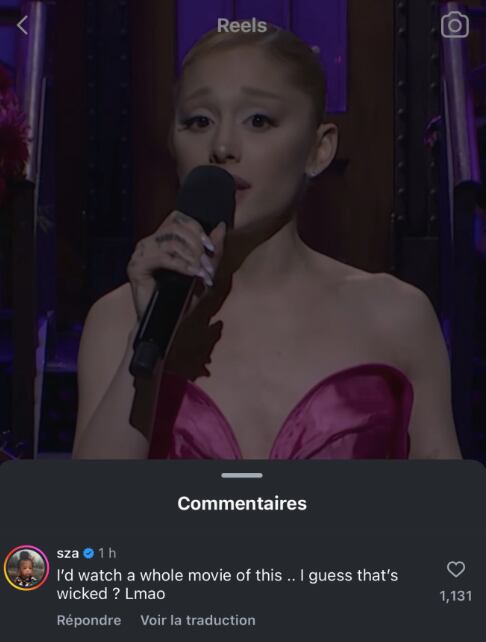 En los comentarios del monólogo de la anfitriona de ayer, la intérprete de "Good Days" escribió: “Vería una película completa de esto... ¿Supongo que eso sería 'Wicked'? LMAO". Haciendo referencia a la película protagonizada por Ariana que pronto se estrena en la pantalla grande.