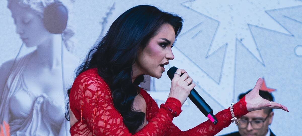 Con un largo vestido color rojo intenso y encaje, que combinaba a la perfección con sus uñas del mismo tono, Emilia comenzaba a cantar "Hay Peligro", demostrando su amplio rango vocal y dejando a los presentes con los pelos de punta.
