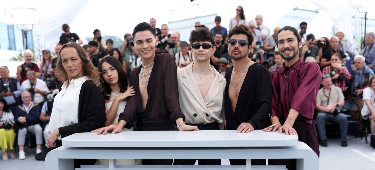 CANNES, FRANCE - MAY 16: (L-R) Paula Dinamarca, Tamara Cortés, Matías Catalán, Diego Céspedes, Pedro Muñoz and Francisco Díaz during the "La Misteriosa Mirada Del Flamenco" (The Mysterious Gaze Of The Flamingo) photocall at the 78th annual Cannes Film Festival at Palais des Festivals on May 16, 2025 in Cannes, France. (Photo by Pascal Le Segretain/Getty Images) / Pascal Le Segretain