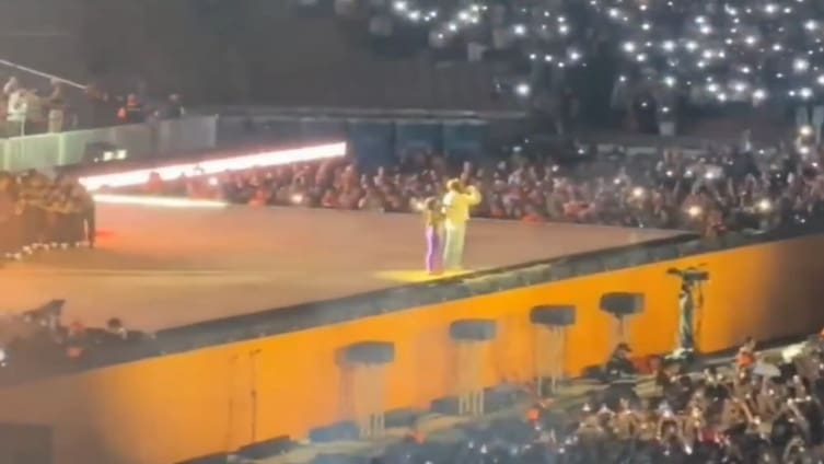 En su más reciente show en Colombia, el boricua les dio una sorpresa a los presentes en el Estadio Atanasio Girardot, Medellín, al invitar a Li Saumet, la vocalista del grupo Bomba Estéreo, para cantar su colaboración "Ojitos Lindos".
