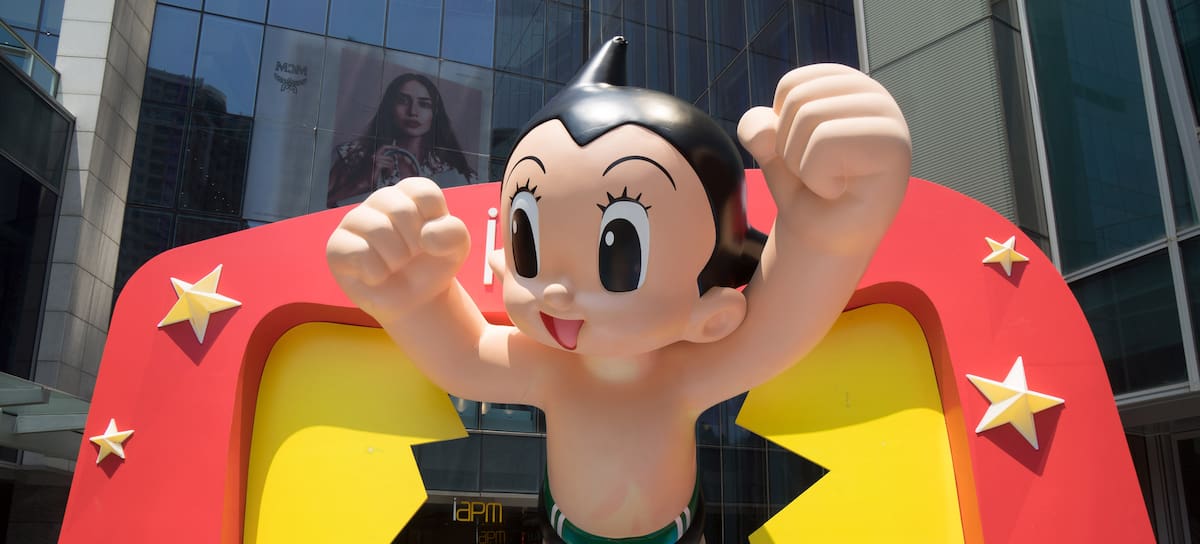 SHANGHAI, CHINA - JULY 29: (CHINA OUT) Astro Boy exhibit at Shanghai IAPM on July 29, 2015 in Shanghai, China. Astro Boy, known in Japan by its original name Mighty Atom, is a Japanese manga series written and illustrated by Osamu Tezuka from 1952 to 1968. The Astro Boy exhibition at Shanghai IAPM was designed by Benfi Sum. (Photo by Visual China Group via Getty Images/Visual China Group via Getty Images) / VCG