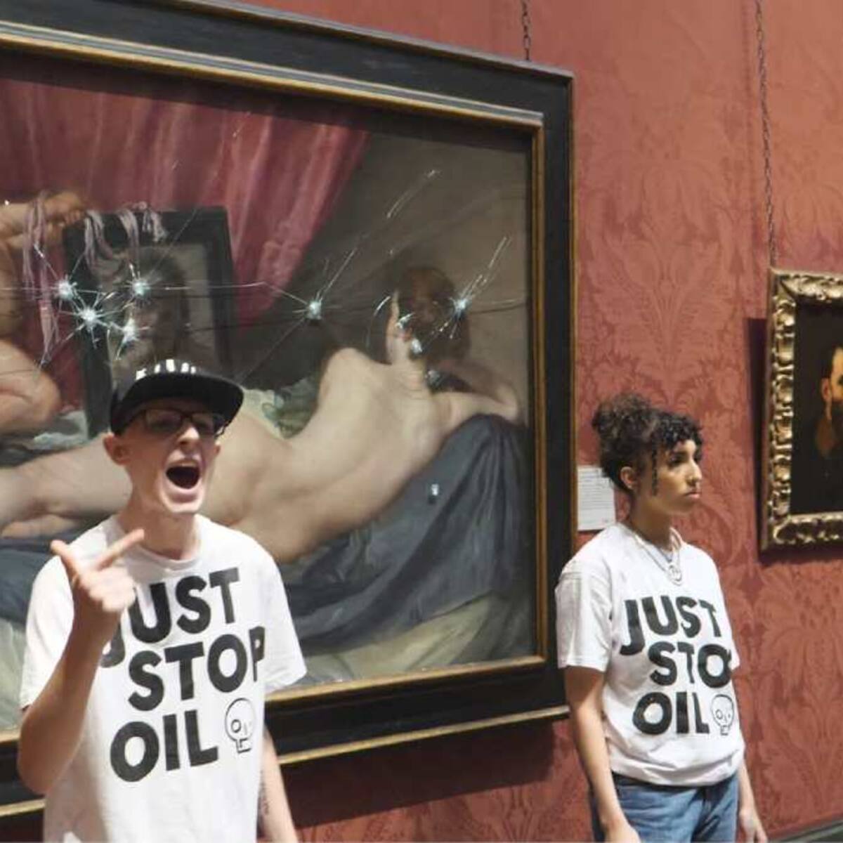Los activistas intentaron romper el vidrio protector del cuadro con martillos, exigiéndole al Gobierno británico que detenga los proyectos de extracción de petróleo y gas en el país.