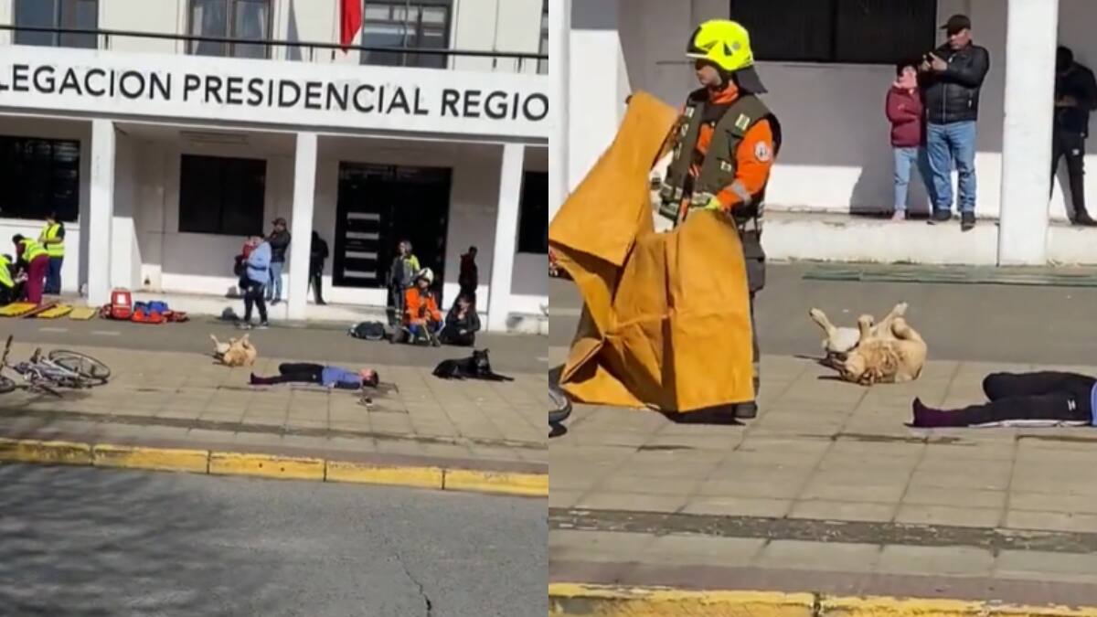 En pleno simulacro de atropello en la ciudad de Puerto Montt un perrito se robó todas las miradas mientras se hacía "el muerto".
