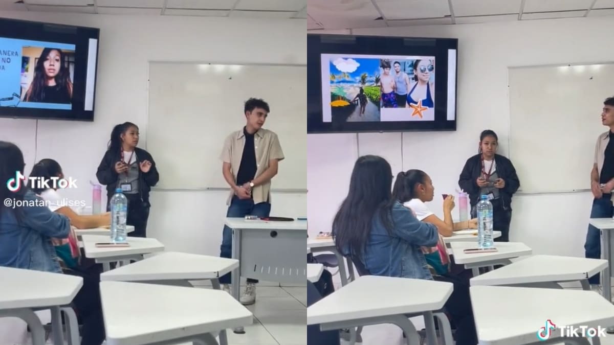 "Y pues, en conclusión, mi compañera no hizo nada", es lo que parte diciendo el joven para exponer a la otra alumna
