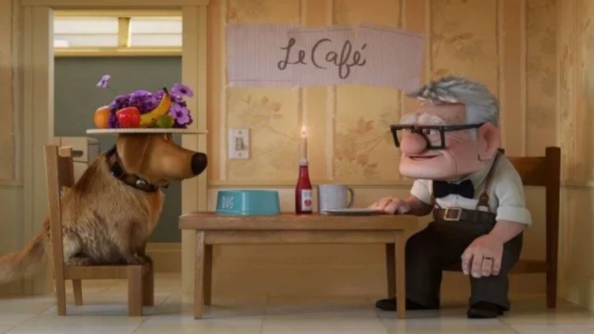 En este se muestra al anciano Carl Fredricksen debatirse como es tener una primera cita junto a su perro Dug que lo ayuda con sus nervios
