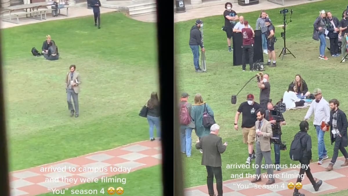 ¿Te imaginas llegar a clases y encontrarte a Penn Badgley en plena grabación de una de las series más exitosas del último tiempo?