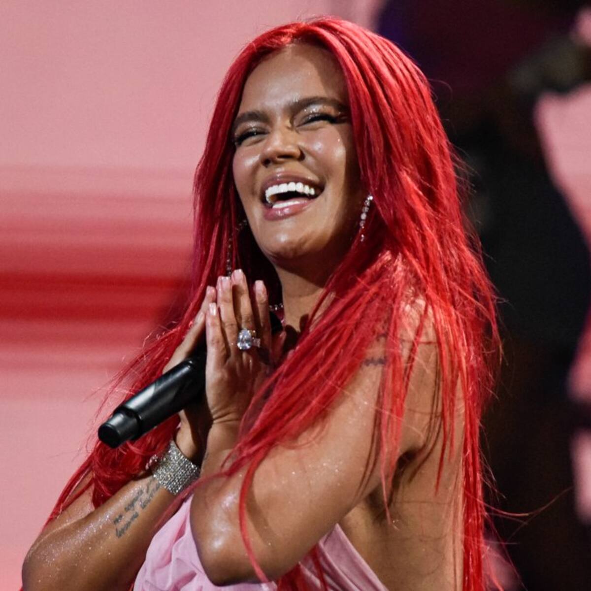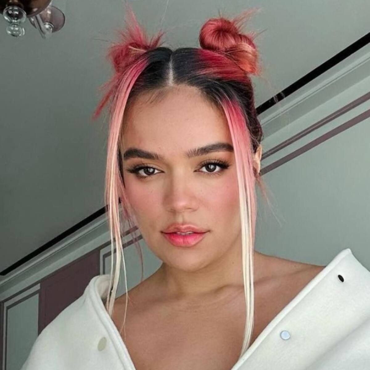 A la Bichota le gusta ir cambiando su cabello. Pues ya la hemos visto con pelo celeste, luego rojo y ahora fue el turno del rosado