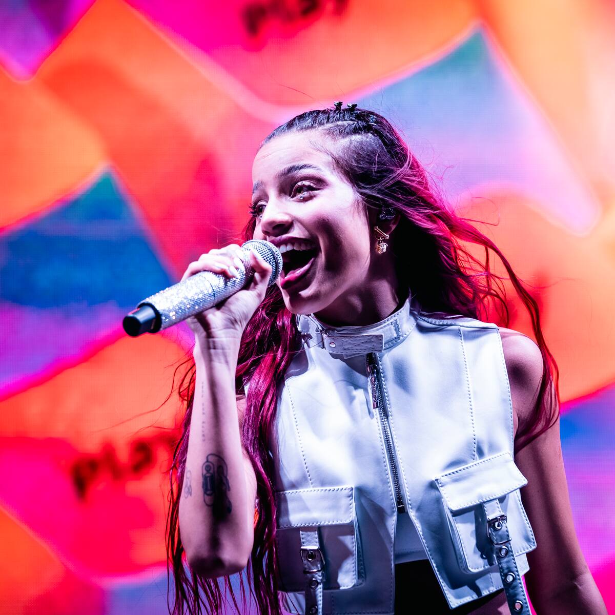 La artista argentina se presentó este 31 de mayo en el Movistar Arena de Madrid, donde aprovechó de adelantar su próxima canción que llevaría por título "Pasarela" y tendrá un sampleo de Loco Mía.