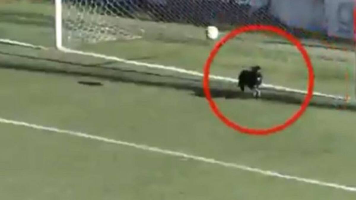 Portero da un mal saque de arco, pero este perrito entra a la cancha y salva el gol