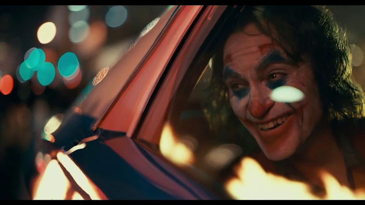 Más específicamente, se trata del momento en que Arthur Fleck (Joker) es llevado en el auto policial mientras ve los disturbios en Gotham